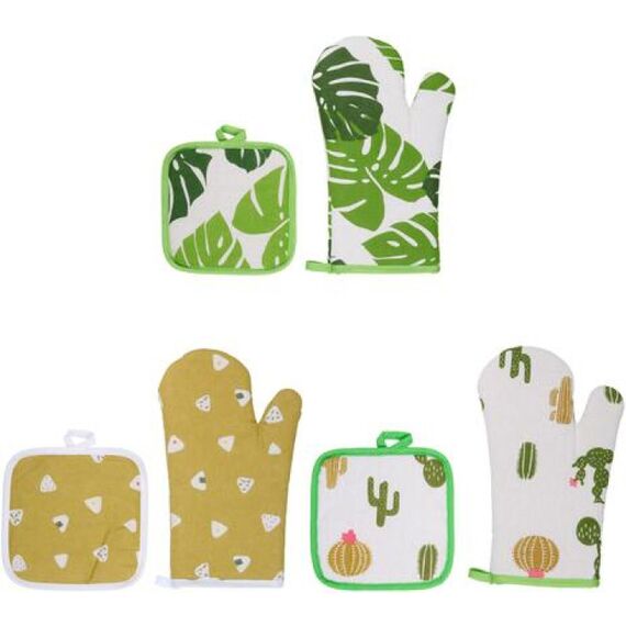 This oven mitt and pan holder set combines practical functionality with a stylish design, making it an essential accessory for any kitchen. Protect your hands and surfaces while adding a splash of color to your cooking space.